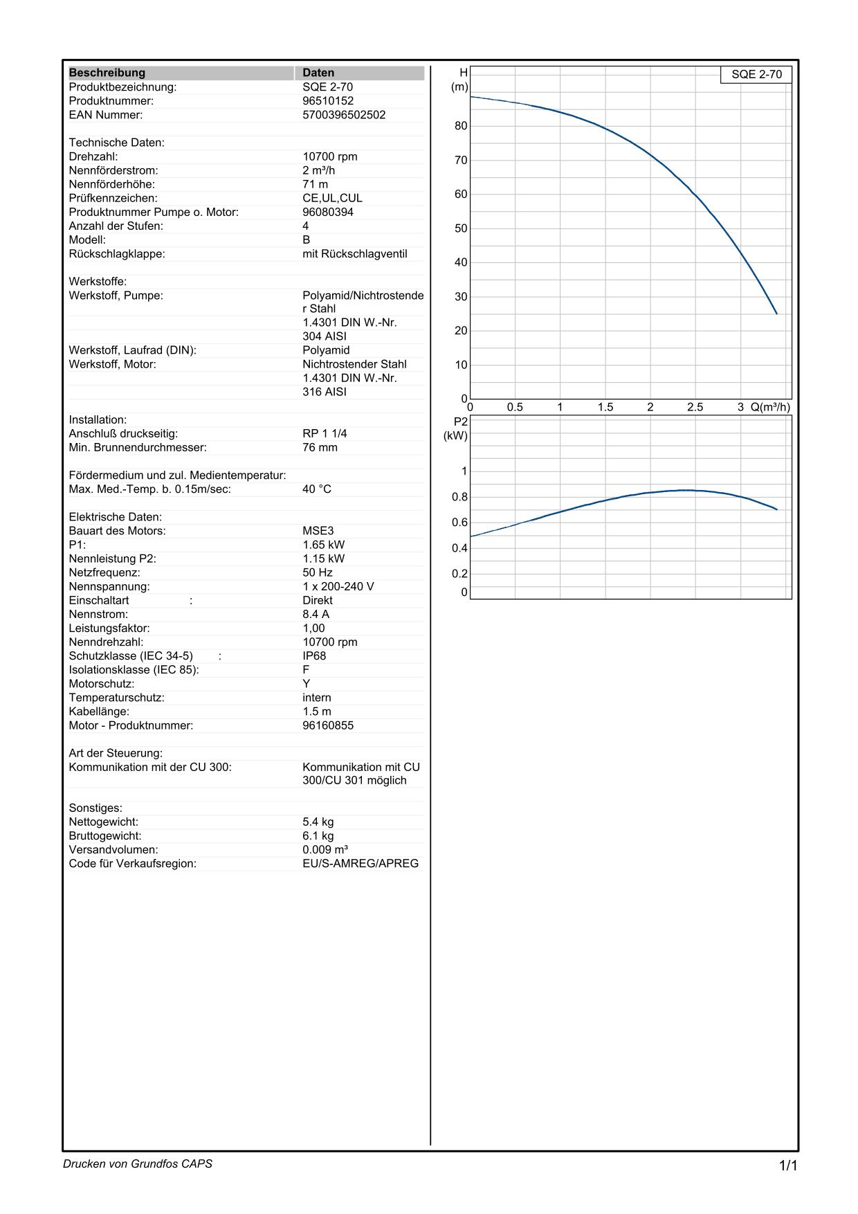 Kurzübersicht Grundfos SP/SQ Pumpen